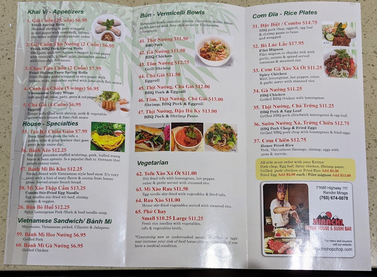 Welcome to Pho Vu, a vibrant eatery nestled in the heart of La Quinta, California. Located at 79630 CA-111 #103, this bustling Vietnamese restaurant has quickly garnered a reputation for its authentic cuisine and welcoming atmosphere.